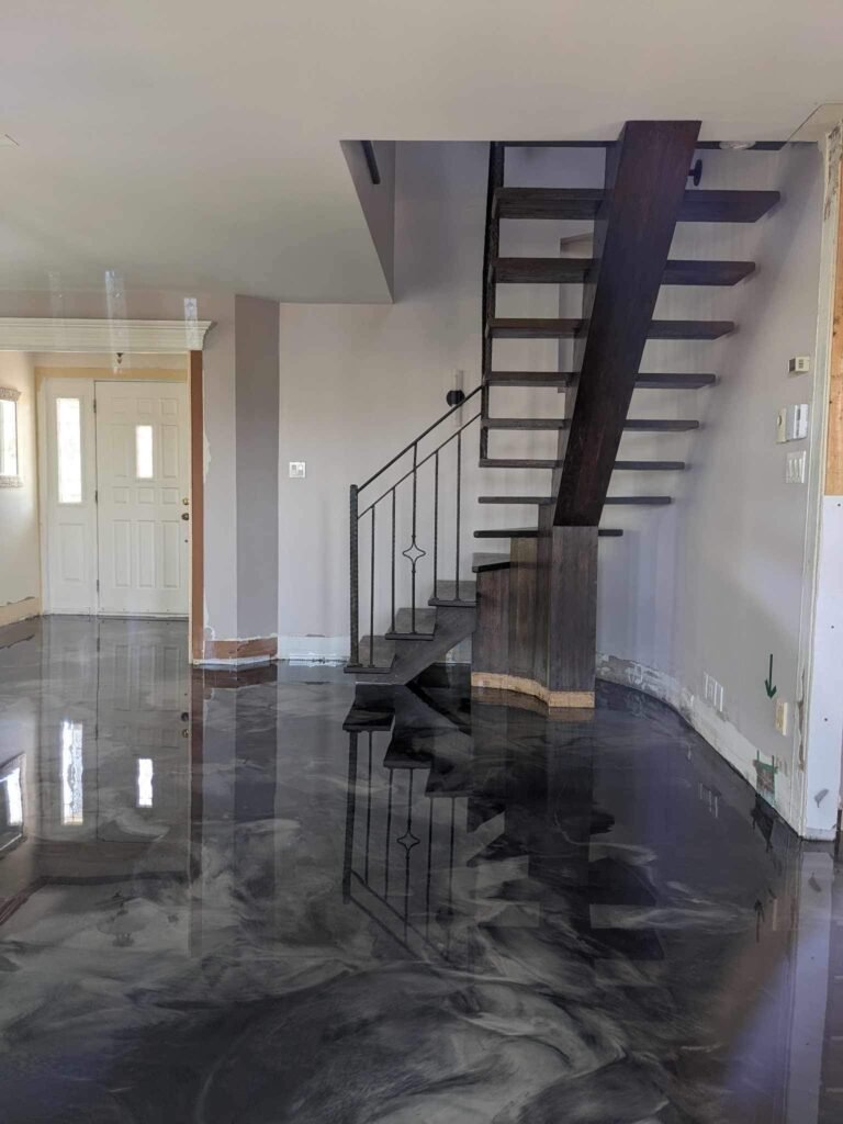Un plancher haut de gamme, unique et spectaculaire. L’époxy métallique transforme vos surfaces avec un effet miroir ou marbré, selon vos goûts et couleurs. Chaque résultat est 100 % personnalisé.